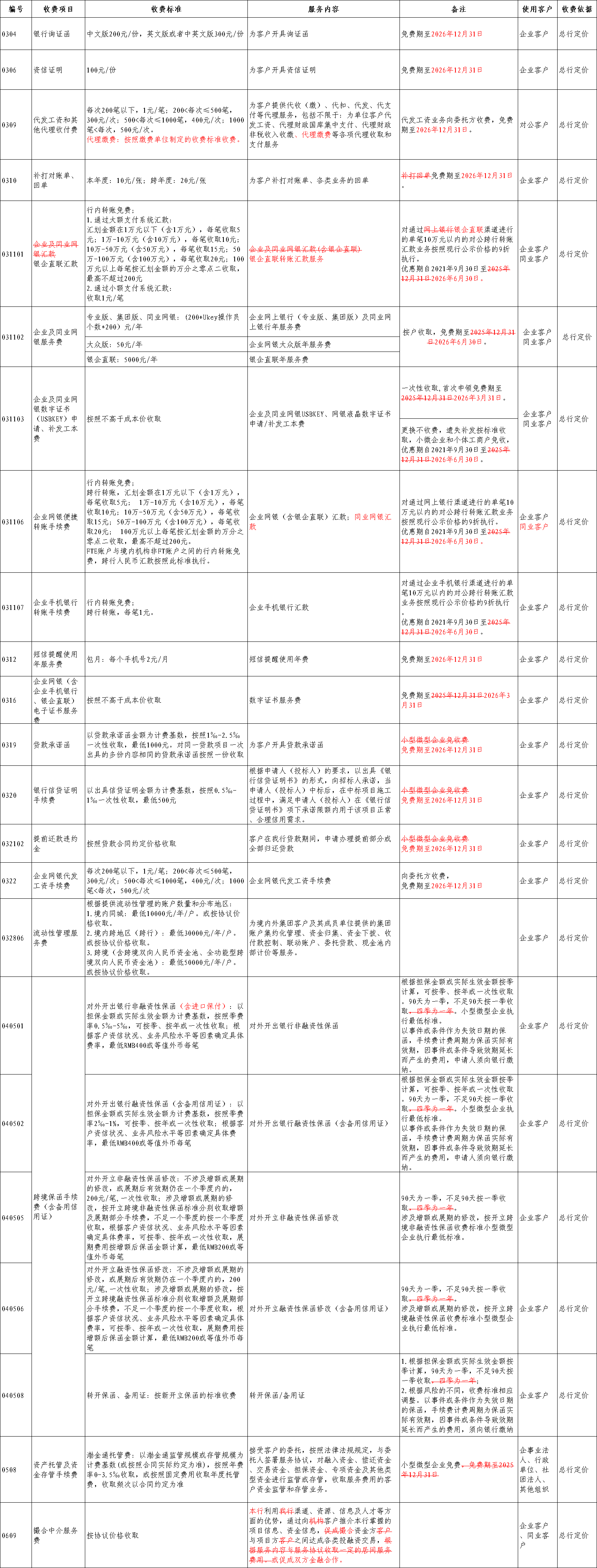 为进一步落实服务实体经济要求,不断满足业务发展需要,总行决定对部分服务收费标准、服务内容及优惠政策等进行调整,现将具体内容公示如下:
