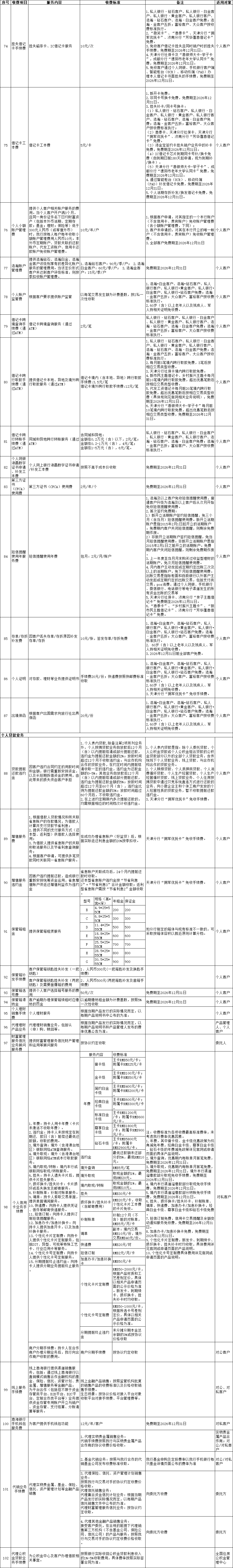 市场调节价项目(对私人民币业务)