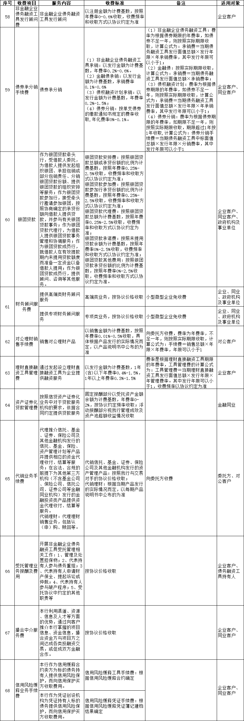 市场调节价项目(投资银行业务)